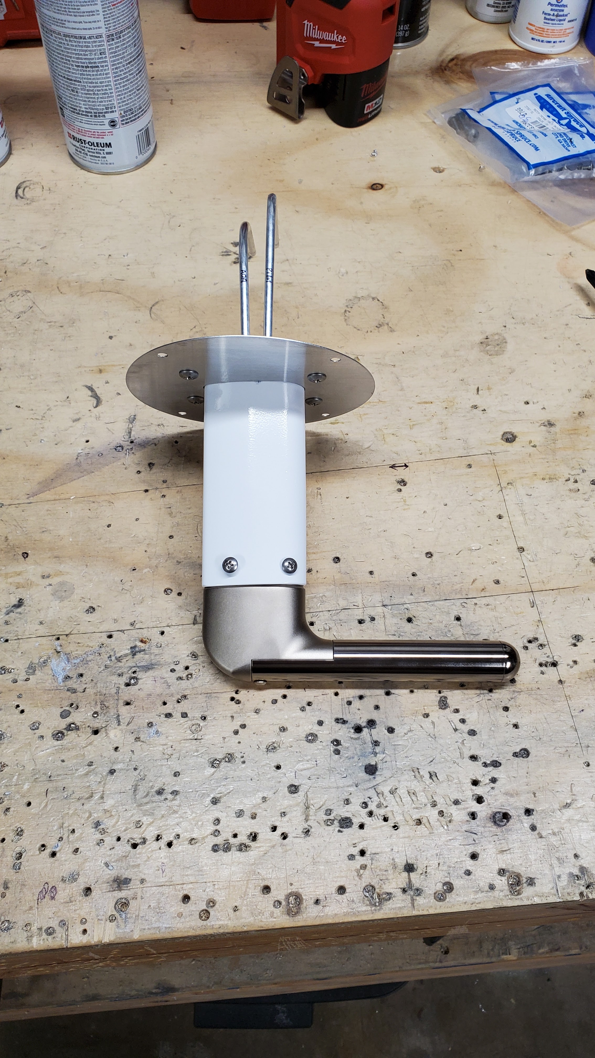 Here is how the connections on the right wing went together. All the electrical stuff is on that plug, and the pitot and AOA air lines connect to the two bulkhead fittings. I guess I did a bad job of measuring when I installed the electrical plug on the fuselage, because the plug interfered just a tiny bit with the edge of the big lightening hole in the first rib of the wing. I just had to file the hole a tiny bit larger and then the wing went in OK from there. On the left side it's just the electrical plug.